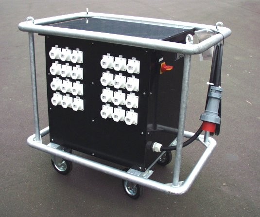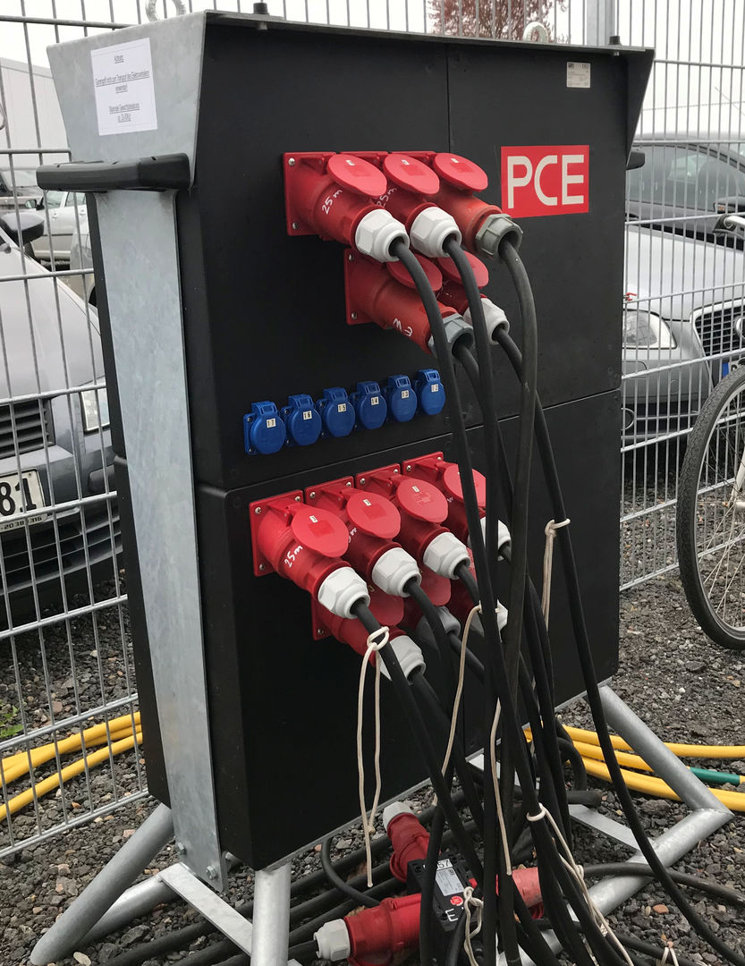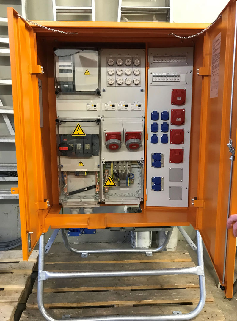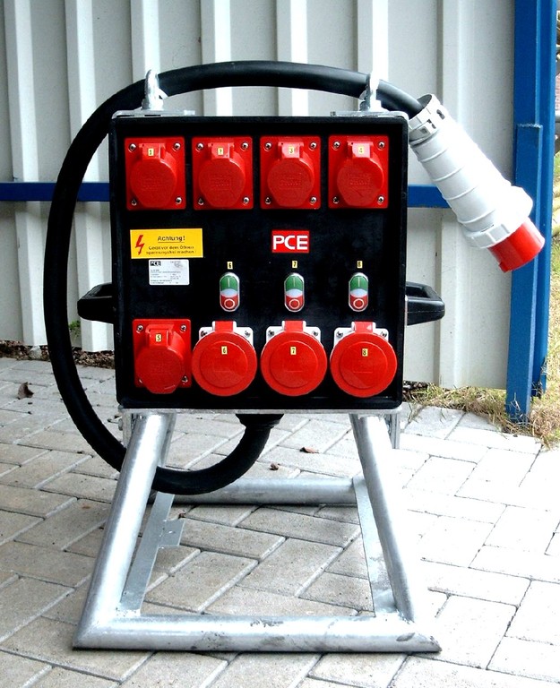 Technisch ausgereifte Verteilerkombinationen, Sicherheits-Transformatoren, Baustromverteiler, Steckverbindungen, Kabel, Verlängerungsleitungen und Arbeitsplatzbeleuchtung.
